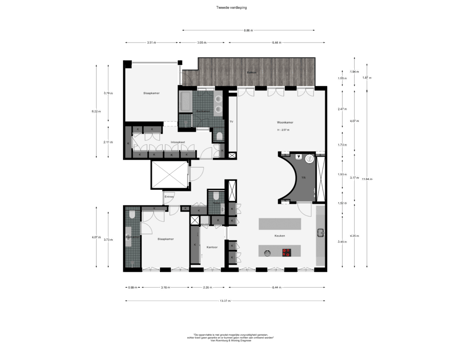 - 17 m² (2,00 meter diep en 8,90 meter breed)