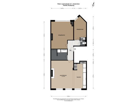 At the rear, the master bedroom is a well-proportionate and vast space, a rare finding in Amsterdam. It features a bright full-wall window over the recently renewed inner courtyard and ample space for a wardrobe wall. The bathroom is finished with tiles to the ceiling and features an extra-large walk-in shower plus space for a washing machine and dryer. A versatile third room can function as studio and guest room, or as a second bedroom.