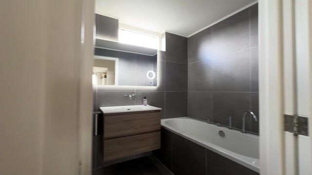* Badkamer met ligbad, inloopdouche en wastafelmeubel