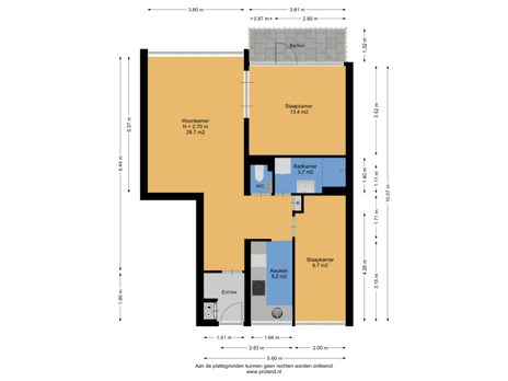 Deze woning is gemeten volgens de Meetinstructie. De Meetinstructie is gebaseerd op de NEN2580. De Meetinstructie is bedoeld om een meer eenduidige manier van meten toe te passen voor het geven van een indicatie van de gebruiksoppervlakte. De Meetinstructie sluit verschillen in meetuitkomsten niet volledig uit, door bijvoorbeeld interpretatieverschillen, afrondingen of beperkingen bij het uitvoeren van de meting. Hoewel wij de woning met veel zorg hebben opgemeten kan het zijn dat er verschillen zijn in de afmetingen. Noch verkoper noch de makelaar accepteert enige aansprakelijkheid voor deze verschillen. De maatvoeringen worden door ons gezien als zuiver indicatief. Indien de exacte maatvoering voor jou van belang is, raden wij jou aan de maten zelf te (laten) meten.