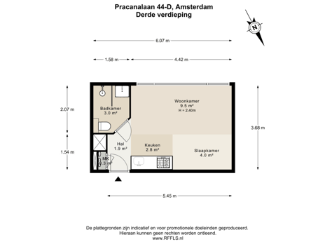 - Woonoppervlakte van ca. 22 m² (volgens NEN-2580 meetinstructie)