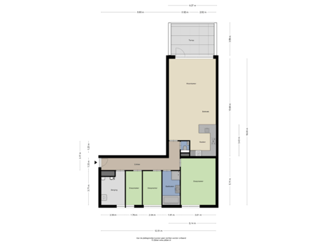 - 19 m² (3,59 meter diep en 5,27 meter breed)