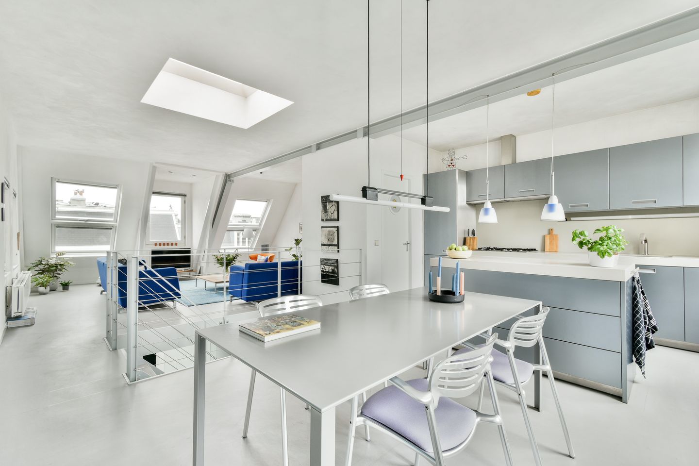 Deze stijlvolle loft kenmerkt zich door een indrukwekkende ruimtelijke indeling, waarbij de twee verdiepingen op een open wijze met elkaar zijn verbonden. De woning is onder architectuur verbouwd, wat resulteert in een harmonieus geheel van licht en ruimte.