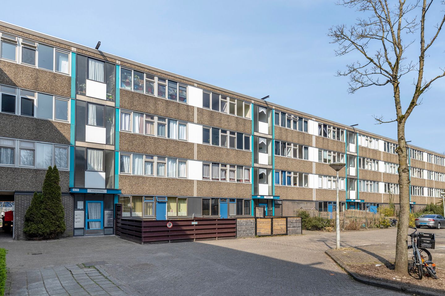 Op de begane grond tref je een ruime (fietsen-)berging en parkeren doe je (nog) gratis aan de rand van het hofje waar voldoende parkeergelegenheid is.