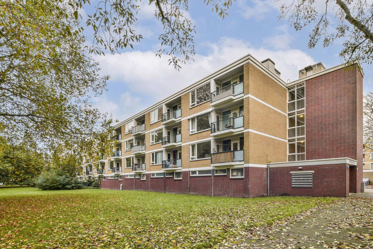 Het driekamerappartement vanuit de hoofdingang (met hal en brievenbussen) te bereiken per lift en per trappenhuis, is gelegen op de bovenste (derde) verdieping en ligt als één na laatste op de galerij. Het is bovendien rechtstreeks per trap te bereiken via de trappen aan het einde van de galerij. Er is een notarieel vastgelegde toestemming om een dakterras met eventueel een dakopbouw op het bovengelegen dak aan te leggen. De ligging van het wooncomplex in een groen plantsoen, met vrij zicht op een nog groter groen plantsoen, is hoe wonen in een tuinstad (term voor groene stadswijk) zou moeten zijn. Het zicht vanuit de woonkamer is op grasvelden, Iepen-, Platanen-, Elsen- en Eikenbomen, waarbij met name direct zicht op een gigantische fraaie boom imponeert, vol herfstpracht, welke bovendien een extra gevoel van privacy geeft. Het betreft een comfortabele indeling met twee ruime slaapkamers en een fijne woonkamer met een groot raamkozijn met zicht op de groene omgeving. De tweede slaapkamer kan tamelijk eenvoudig worden toegevoegd aan de woonkamer, indien men een doorzon woonkamer zou willen creëren. Deze slaapkamer wordt thans gebruikt als werkkamer en komt met een handig tweepersoons opklapbaar bed voor het logeren van familie. De woonkamer is gelegen op de oostgevel en geeft toegang tot een ruim en overdekt balkon. De hoofdslaapkamer ligt ook aan de oostgevel en heeft toegang tot het balkon. De tweede slaapkamer ligt aan de westgevel. De gescheiden keuken is praktisch in het gebruik en is te betreden vanuit de hal.