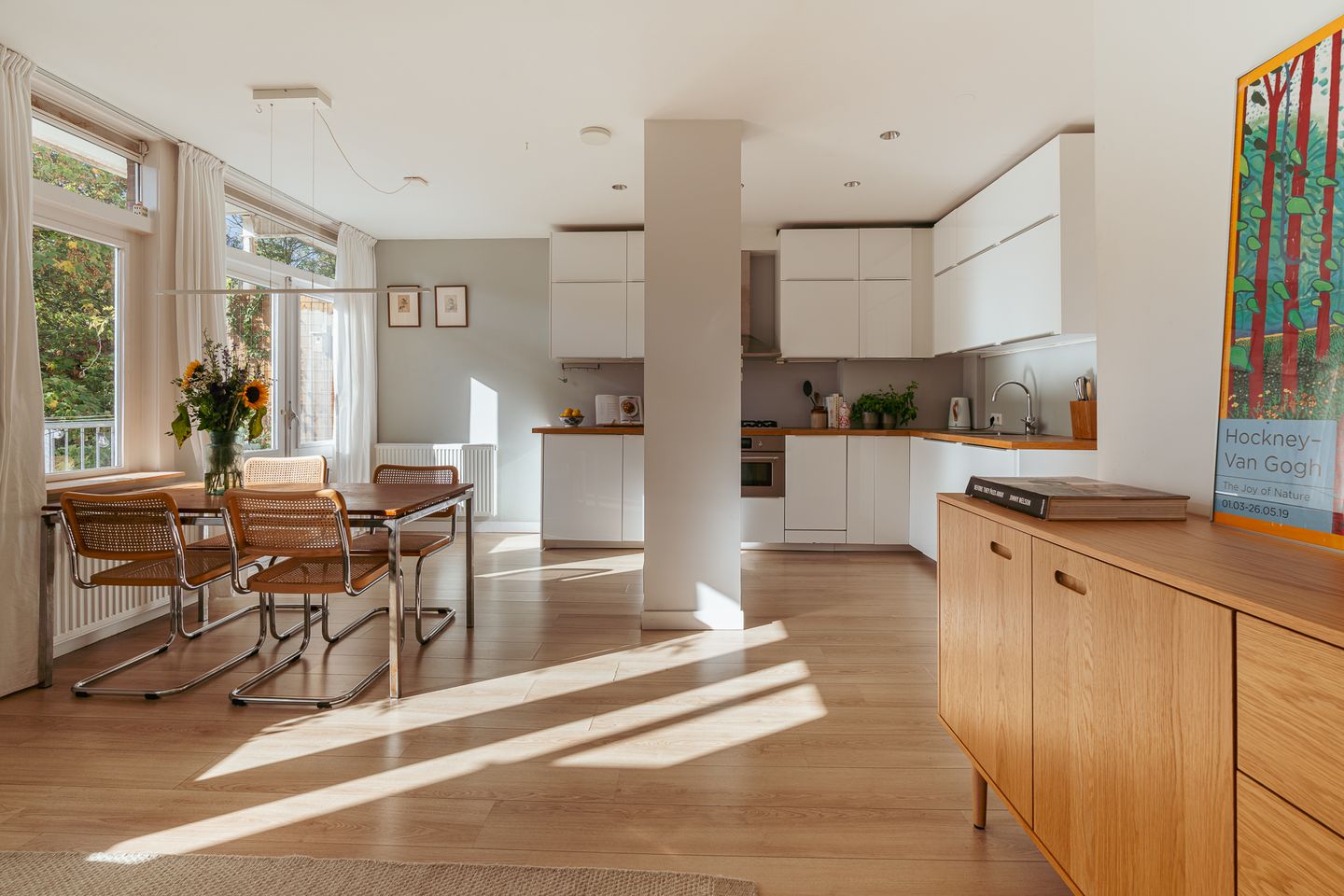 Het appartement ligt in de brede Stuyvesantstraat, een rustige straat in De Baarsjes met uitzicht op mooie lindebomen, precies tussen het Rembrandtpark en het Vondelpark.