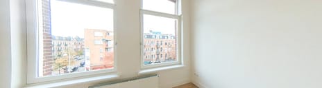 The living room with open kitchen has an abundance of natural light thanks to the corner location. From the living room you have a charming view of Javastraat from the French balcony. There is also a roof terrace with views over the city. In addition, the property is situated on freehold land and comes with a rental permit for shared occupancy.