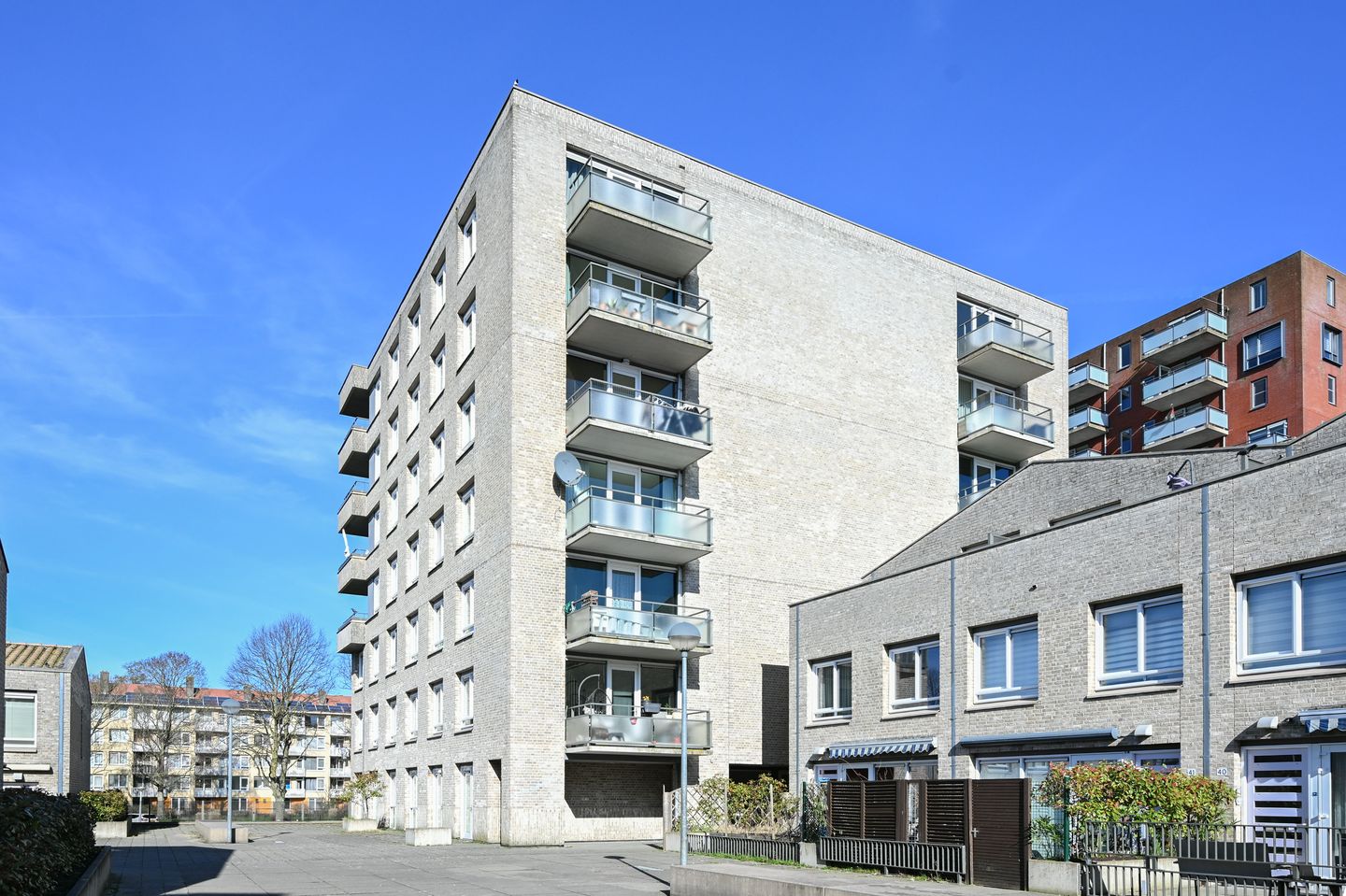 The apartment is situated in a very quiet part of the Geuzenveld/Slotermeer neighborhood. Within walking distance, you will find all necessary shops at Lambertus Zijlplein. The supermarket is located just across the street from the apartment complex. The area is well-served by various tram and bus connections. Major roads such as the A10, A9, and A4 are just a few minutes away by car. Schiphol Airport is easily and quickly accessible by both bus and car.