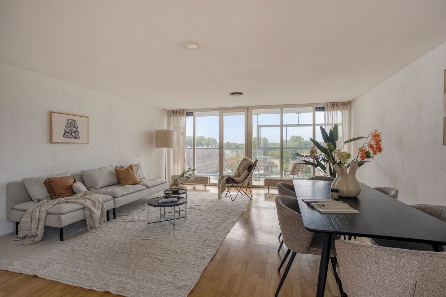 Op de zevende verdieping wacht de lichte en ruime woonkamer op je, met een adembenemend uitzicht op de omgeving. De half open keuken biedt talloze mogelijkheden om naar je eigen smaak in te richten, klaar om je culinaire creaties tot leven te brengen. Het balkon, gelegen op het westen, is een absolute trekpleister. Stel je de serene avonden voor die je hier kunt doorbrengen, met de zacht glooiende zonsondergang als decor.