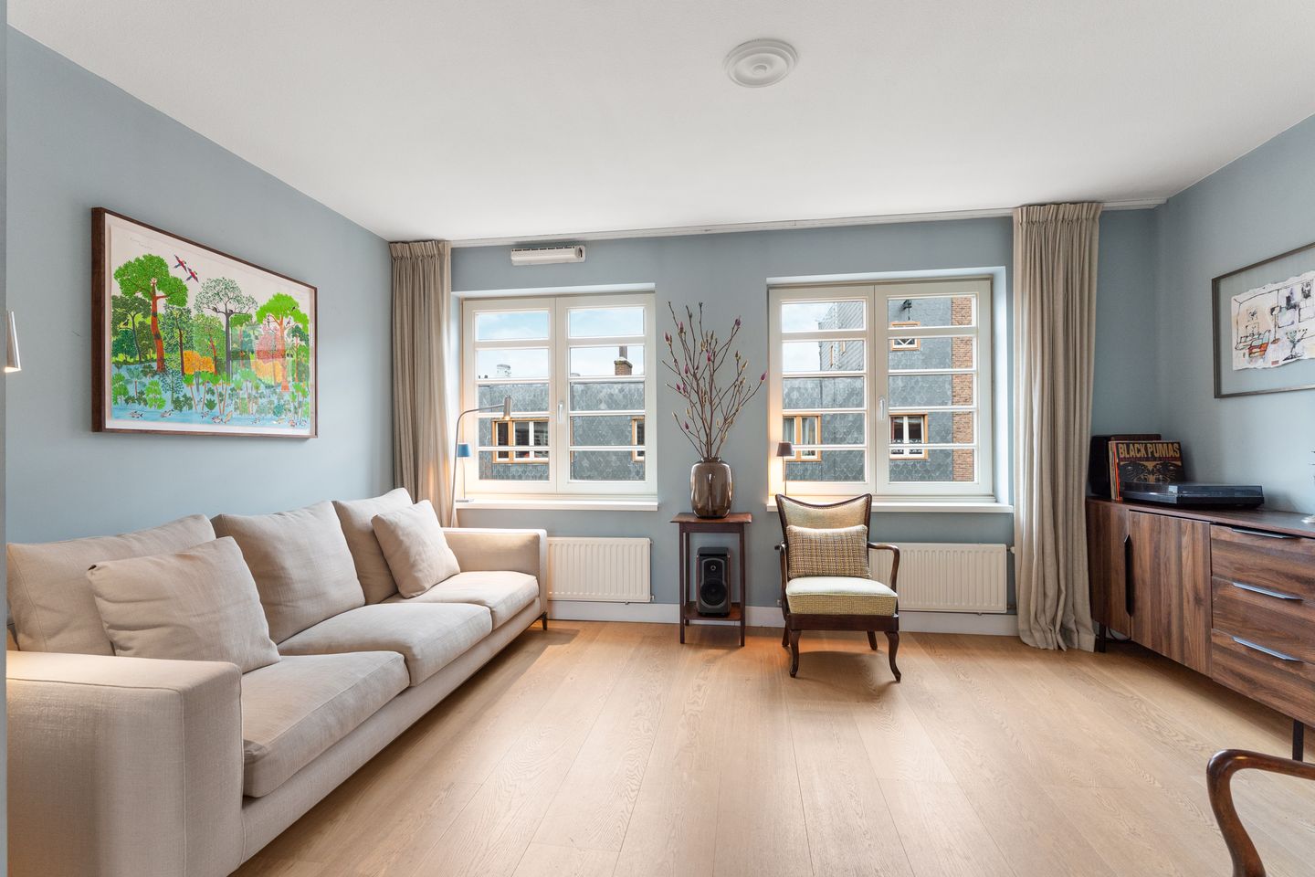 Via het brede, karakteristieke trappenhuis bereik je de woning op de derde verdieping. Bij binnenkomst kom je in een nette hal die toegang biedt tot de sfeervolle doorzonwoonkamer. Aan de voorzijde bevindt zich een ruim zitgedeelte met veel lichtinval dankzij de klassieke raampartijen. Aan de achterzijde ligt de open keuken met eethoek. Door deze slimme indeling voelt de ruimte als één geheel, terwijl zit- en eetgedeelte duidelijk van elkaar gescheiden zijn.