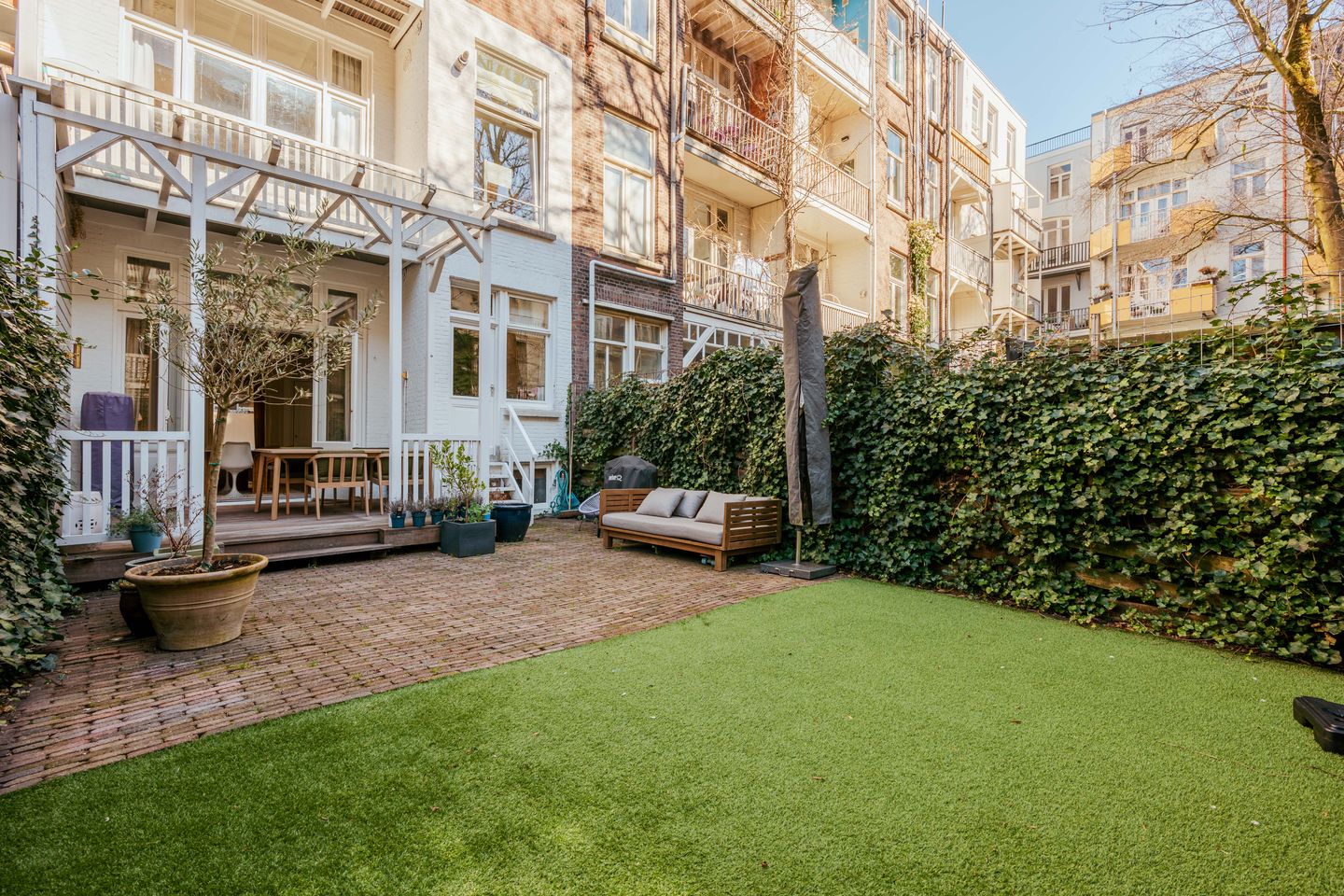 Via de eetkamer geven openslaande deuren toegang tot de bijzonder royale en op deze locatie unieke achtertuin. De tuin is gelegen op het zuidoosten en geniet daardoor van veel zonlicht. Direct aan de woning bevindt zich een overdekt terras, ideaal voor lange zomeravonden en buiten dineren. De achtertuin van wel circa 50 m² biedt daarnaast volop mogelijkheden voor verdere inrichting en gebruik.