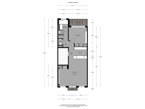 Bij binnenkomst op de tweede verdieping betreedt u de lichte en royale woonkamer, die naadloos verbonden is met de open keuken en het Franse balkon. Via de gang bereikt u de comfortabele slaapkamer, voorzien van een ingebouwd bureau en een garderobekast. Aangrenzend bevinden zich het separate toilet en de goed uitgeruste badkamer met ligbad/douche, wastafel, handdoek-radiator en een praktische was-/bergruimte met aansluiting voor de wasmachine. Aan de achterzijde geeft de slaapkamer toegang tot een rustig balkon, ideaal om te ontspannen.