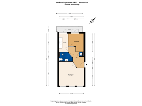 De verkoopinformatie is met grote zorgvuldigheid samengesteld doch voor de juistheid van de inhoud kunnen wij niet instaan en er kunnen derhalve geen rechten aan worden ontleend. De inhoud is puur informatief en mag niet worden beschouwd als een aanbod. Daar waar gesproken wordt over inhoud, oppervlakten of afmetingen moeten deze worden beschouwd als indicatief en als circa maten. U dient als koper zelfonderzoek te verrichten naar zaken die voor u van belang zijn. Wij raden u in dat verband aan uw eigen (NVM-)makelaar in te schakelen.
