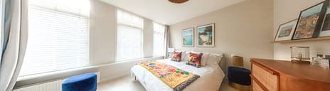 De master bedroom is opvallend ruim voor Amsterdamse begrippen en biedt met circa 19 m² een comfortabel en luchtig slaapvertrek. De vaste inbouwkast blijft achter en biedt extra bergruimte. De vloerbedekking uit 2022 geeft de kamer een warme en rustgevende sfeer. De tweede slaapkamer is eveneens goed van formaat en heeft toegang tot het tweede balkon, ideaal als logeerkamer, thuiswerkplek of kinderkamer.