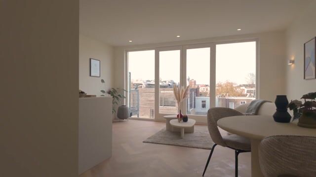 Via een gerenoveerd trappenhuis bereik je deze stijlvolle bovenwoning, gelegen op de vierde en tevens bovenste verdieping. Zodra je binnenkomt, valt direct op hoe strak en modern deze woning is afgewerkt. Door het hele appartement ligt een prachtige houten vloer, geen laminaat of pvc, wat zorgt voor een warme en hoogwaardige uitstraling.