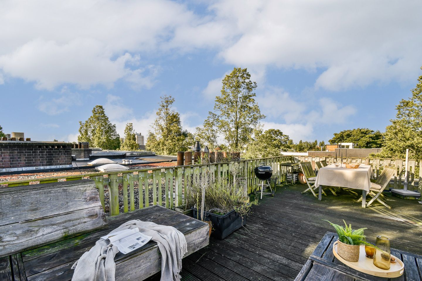 In the vibrant district of De Pijp lies this bright and move-in-ready apartment of 94 m². The through-living property features a spacious kitchen-diner, an atmospheric living room en-suite, two comfortable bedrooms, and a luxurious bathroom. A highlight is the sunny roof terrace of approx. 31 m², accessible via the staircase. This is the ideal spot to relax and enjoy the urban surroundings.