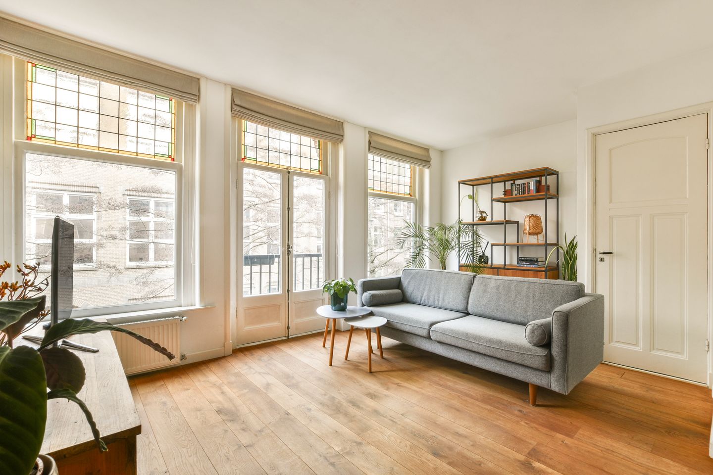 Via een goed onderhouden trappenhuis bereik je dit sfeervolle appartement op de tweede verdieping. Bij binnenkomst word je verwelkomd in een charmante L-vormige doorzonwoonkamer met glas-in-loodramen, veel lichtinval, en openslaande deuren naar een Frans balkon. De moderne open keuken is van alle gemakken voorzien en geeft toegang tot een zonnig balkon op het zuiden.