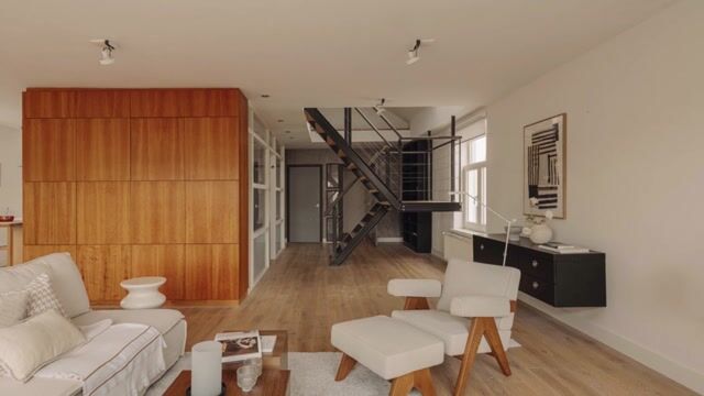 - Via een karaktervolle industriële trap – perfect passend bij de loftstijl – bereik je de derde verdieping.