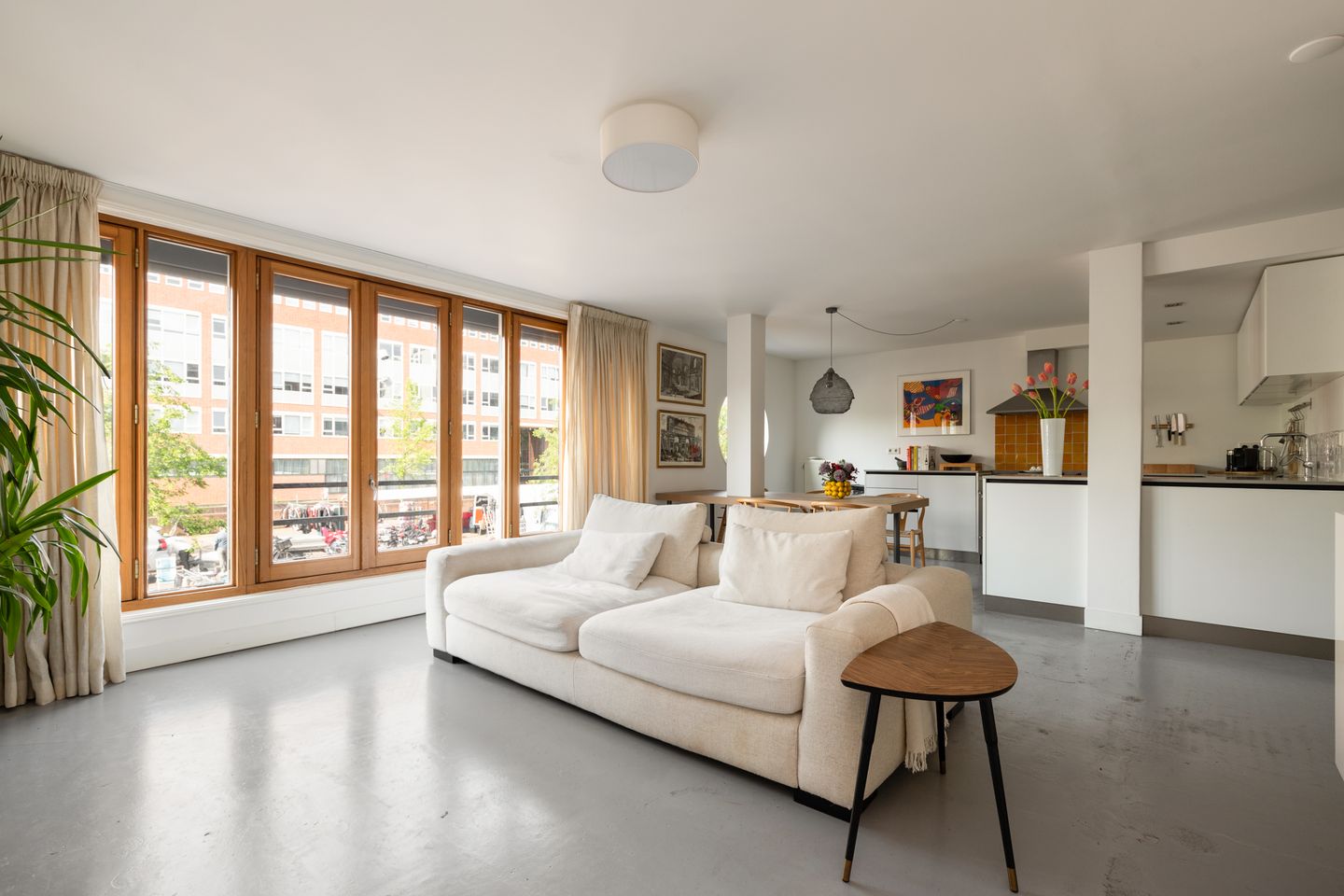 Entrance via elevator into the hallway. From the apartment’s entrance, you access a hallway that leads to all rooms. At the front, you'll find the stylish and bright living/dining room with an open-plan kitchen. The modern kitchen is fitted with various high-end built-in appliances. From the living/dining area, there’s a beautiful wide view over the recently redesigned Waterlooplein.