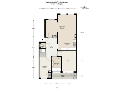 - Appartementsrecht van ca. 75m² (gemeten conform NEN2580 meetinstructie)