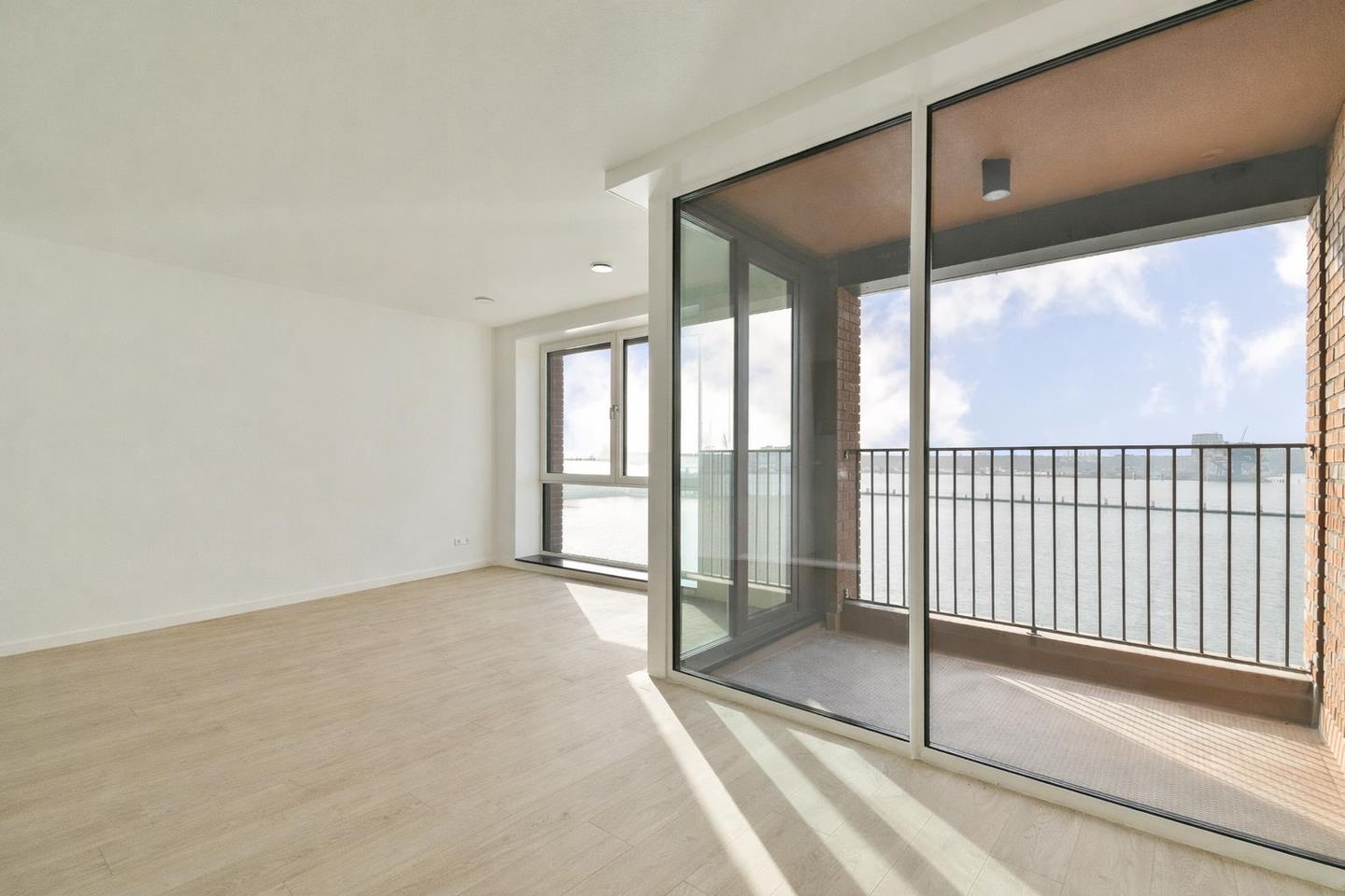 This apartment, completed at the end of 2025, has a living area of approximately 70m² and is entirely on one level. Large windows provide an abundance of natural light and an unobstructed view over the IJ river and the city centre of Amsterdam. Every evening you can enjoy impressive sunsets here. The apartment offers two bedrooms, an open living area with kitchen, a modern bathroom with walk-in shower, and a sunny southwest-facing loggia. The building is equipped with an elevator, and there is an optional parking space available for purchase in the underground parking garage.