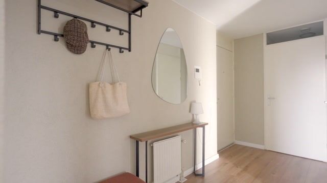 Met de lift bereik je de voordeur van de woning op de zesde verdieping. De ruime entree geeft toegang tot het staande toilet met fonteintje, een afgesloten bergkast met witgoedaansluitingen, de badkamer, twee verzorgd afgewerkte slaapkamers (waarvan de grootste toegang biedt tot het balkon) en de royale, lichte woonkamer met open keuken.