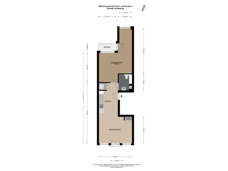 Via de gemeenschappelijke entree met trapopgang kom je op de tweede etage.Hier is de entree van de woning. Aan de voorzijde is de woonkamer met openslaande deuren naar het Frans balkon waar je heerlijk kunt genieten van de avond zon. In de hoek van de woonkamer is de meterkast. De open keuken is v.v. een combi oven, koel- vries combinatie, vaatwasser, 4-pits gaskooktoestel en afzuigkap. De slaapkamer is aan de achterzijde gelegen en geeft toegang tot het balkon op het zuiden. De slaapkamer biedt de mogelijkheid om een studie- of werkruimteruimte te creëren. De badkamer heeft een inloop douche, toilet, wastafel, design radiator en hier is ook CV-opstelling.