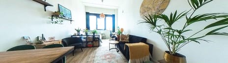 - Lichte woon- en slaapruimte in één: Slim en creatief ingedeeld, met natuurlijke afscheiding voor een gevoel van privacy.