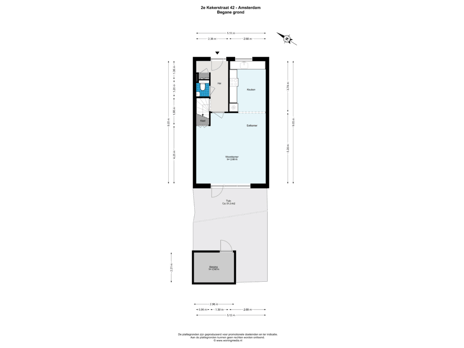 - 57 m² (10,80 meter diep en 5,30 meter breed)