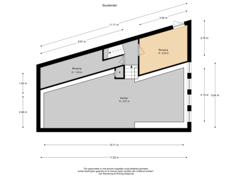 Indeling souterrain: directe toegang vanuit de hal naar ruime berging, inpandige berging met deur naar de oprit en ruime lichte ruimte geschikt voor veelzijdig gebruik: extra slaapkamer(s), praktijkruimte, fitness of hobbyruimte.