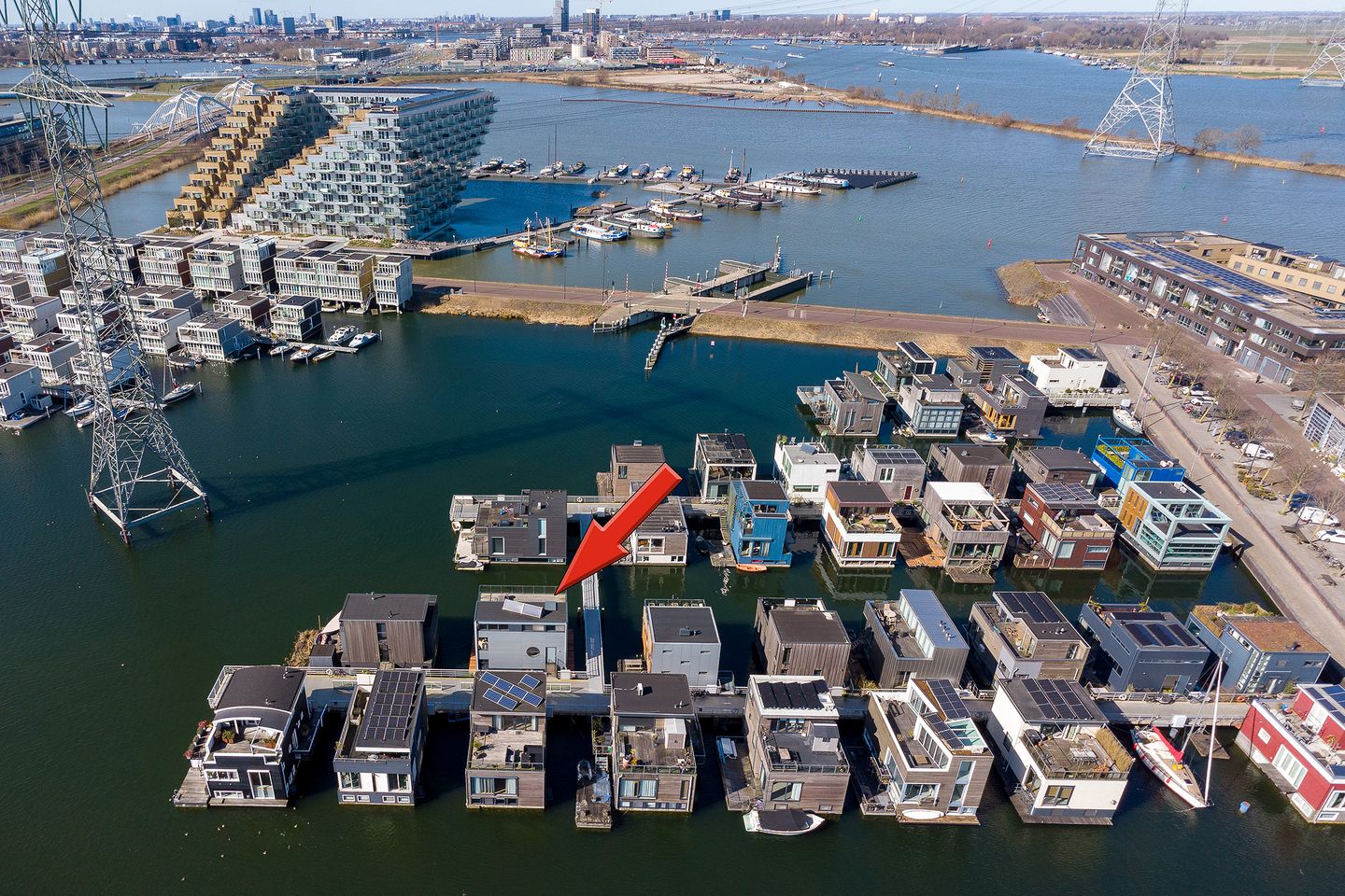 Goed onderhouden, op het water gelegen, een woonoppervlakte van maar liefst 139 m² verdeeld over 4 woonlagen, een royaal dakterras van 31 m², eigen aanlegsteiger, drijvend terras op het water, eigen parkeerplaats in de nabij gelegen parkeergarage, een riante living met een moderne open keuken, zitkamer, 3 slaapkamers, 2 badkamers en energielabel A, dat zijn de “unique selling points” van deze fantastische watervilla!