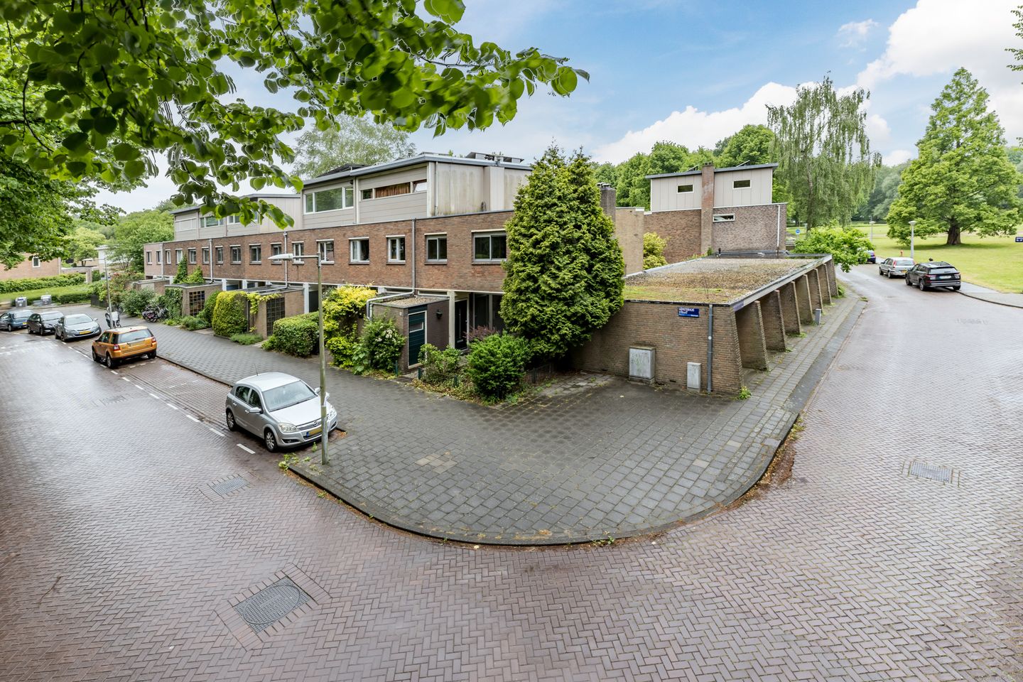 Spacious entrance/hall with access to the storage/utility room on the street side, toilet with adjacent staircase cupboard, spacious light living room with sliding doors to the back garden (from which also access to the garage) next to the living room the separate kitchen which in this type of house is often combined with the living room to form one large L-shaped living room, stairs to the first floor: hall/landing, two bedrooms at the front, centrally in the middle the bathroom with bath and sink, at the back two more bedrooms, one with a balcony. Many of this type of house on this location are expanded with an extra floor on top and/or an extension on the ground floor. The reason for this is clear; the living environment is so pleasant that people prefer to increase the living space rather than move.