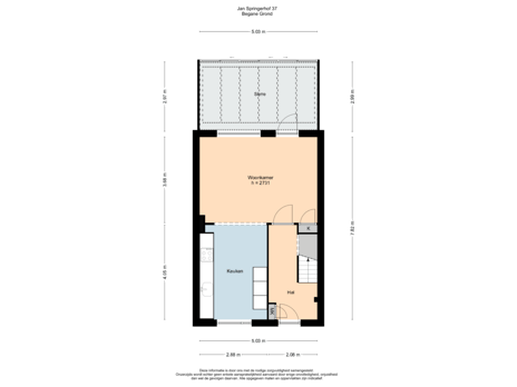 Deze woning is gemeten volgens de Meetinstructie. De Meetinstructie is gebaseerd op de NEN2580. De Meetinstructie is bedoeld om een meer eenduidige manier van meten toe te passen voor het geven van een indicatie van de gebruiksoppervlakte. De Meetinstructie sluit verschillen in meetuitkomsten niet volledig uit, door bijvoorbeeld interpretatieverschillen, afrondingen of beperkingen bij het uitvoeren van de meting. Hoewel wij de woning met veel zorg hebben opgemeten kan het zijn dat er verschillen zijn in de afmetingen. Noch verkoper noch de makelaar accepteert enige aansprakelijkheid voor deze verschillen. De maatvoeringen worden door ons gezien als zuiver indicatief. Indien de exacte maatvoering voor u van belang is, raden wij u aan de maten zelf te (laten) meten.