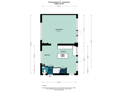 - 60 m² (6,00 meter diep en 10,00 meter breed)