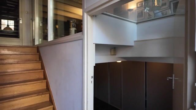 At the front: an atmospheric office with a beautiful canal view. At the rear: a classic library with mezzanine/void. These floors—together with the basement and raised ground floor—are ideal for use as office, practice or studio at home.