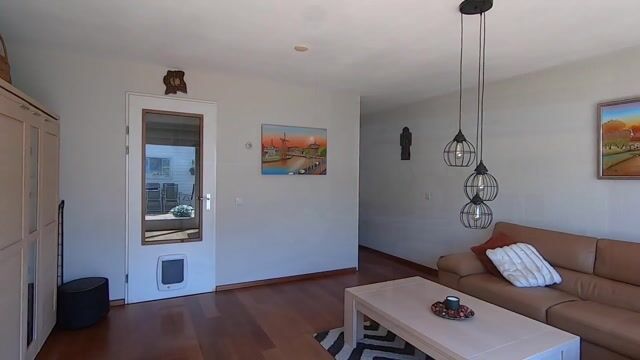 Entree, in de hal vind je het toilet met fonteintje, de meterkast en een handige provisiekast. Vanuit hier loop je door naar de woonkamer aan de achterzijde van de woning. Deze is royaal opgezet, heerlijk licht dankzij de grote schuifpui en voorzien van een mooie houten vloer.