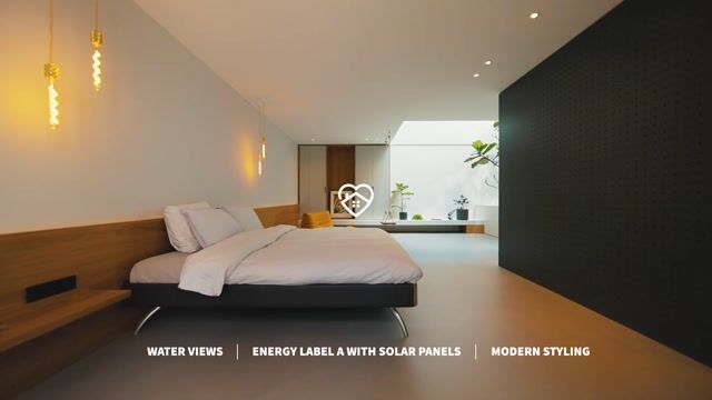 Naast alle voordelen van nieuwbouw, onder andere: zeer goede isolatie en ventilatie, vloerverwarming en koeling, domoticasysteem en beveiliging, berging en parkeren in onderbouw heeft de woning een unieke diepte van meer dan 28 meter beneden en dat merkt men direct doordat alles heel ruim en weids is opgezet. Het grote, zonnige dakterras van meer dan 100 m², grenzend aan de woonkamer, ligt beschut en profiteert optimaal van de middagzon.