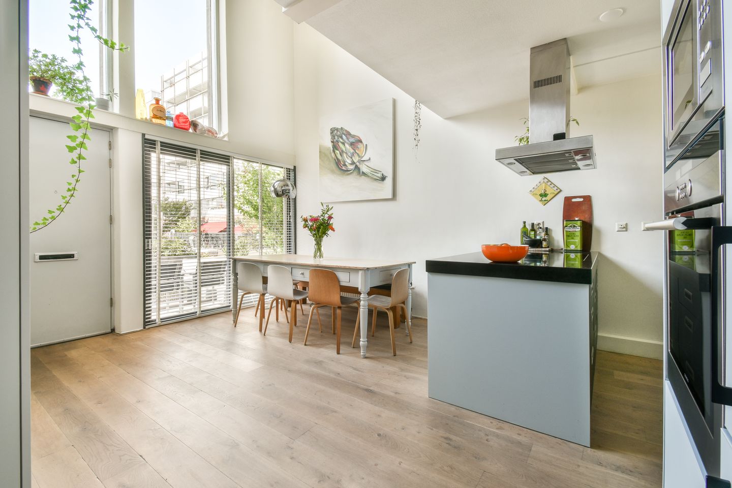 De woning onderscheidt zich door de vide, hoge plafonds aan zowel de voor- als achterzijde, grote raampartijen én een speelse indeling met een split-level verdieping. Aan de voorzijde een heerlijk terras (met middag- en avondzon) en op de bovenste verdieping bevindt zich een zonnig dakterras op het westen.