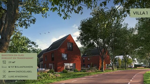De villa’s worden gebouwd op royale kavels variërend van 645 m² tot 682 m² en uitgevoerd in robuuste, hoogwaardige bakstenen of een stoere combinatie van steen en donker hout. Elke villa heeft twee privéparkeerplaatsen, met extra parkeermogelijkheden voor gasten. Alle woningen zijn voorzien van een voorlopig energielabel A++++, wat zorgt voor duurzaamheid en lage energiekosten.