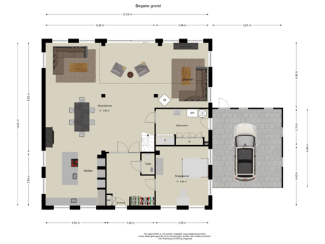 Via de overdekte carport met ruimte voor twee auto’s kom je binnen in de bijkeuken. Of je komt via de voordeur binnen in een stijlvolle hal met garderobe, gastentoilet en toegang tot de begane grond.en één van de slaapkamers .