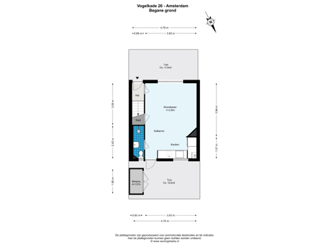 - 13 m² (2,68 meter diep en 4,70 meter breed)
