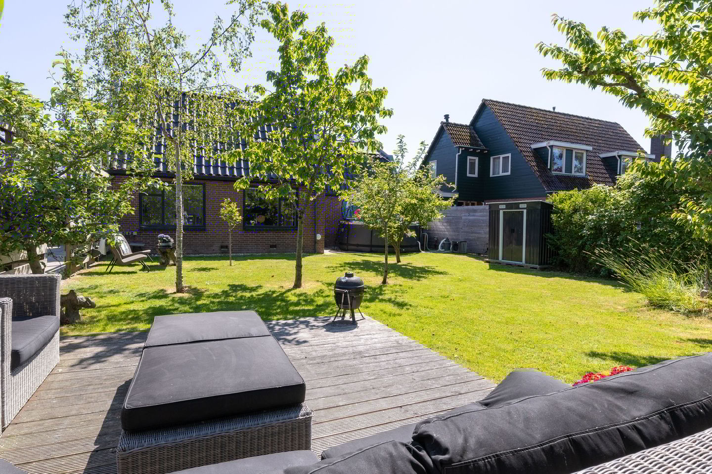 De woning ligt op een mooi perceel van 437 m² met eigen oprit en een grote tuin. Volop privacy, een fraai en frisgroen gazon, volwassen en jonge bomen die levendigheid en schaduw bieden op zonnige dagen — maar bovenal: rust. Leuk om te benoemen is de grondkoeler; altijd een koud drankje in de tuin voorradig. Wie heeft dat? Kortom, hier geniet je optimaal van het buitenleven. En mocht het je te warm worden? Binnen een paar minuten wandel je naar het IJsselmeer voor een verkoelende duik.