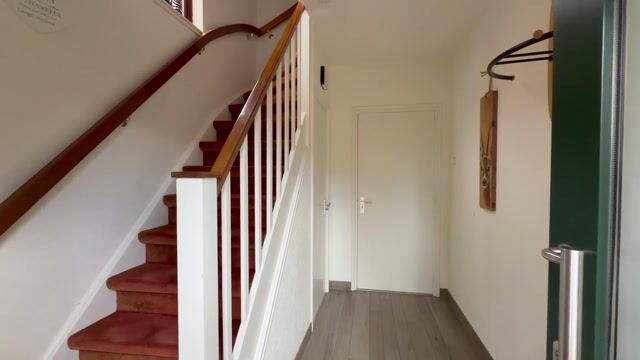 Entree, hal, toegang naar de kelder, dichte keuken met inbouwapparatuur, lichte, sfeervolle doorzonkamer, bijkeuken met inbouwverlichting, aansluiting wasmachine / droger, hangend toilet met fontein en bergzolder.