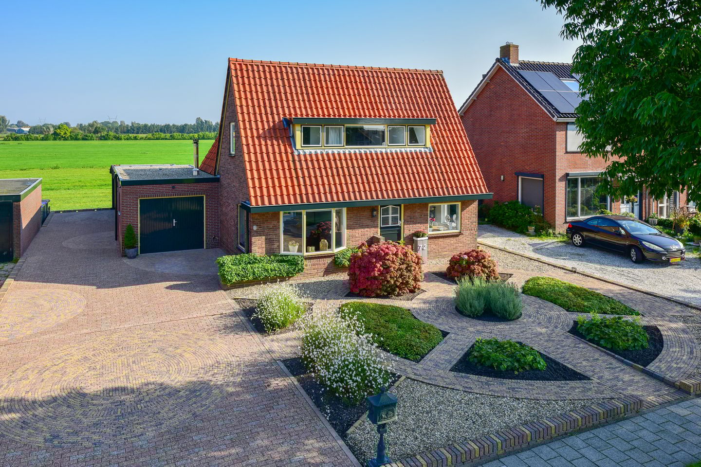 Via de voortuin met oprit is de entree van de woning te bereiken.