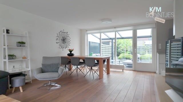 De gehele begane grond is afgewerkt met een eikenhouten vloer. Alle wanden zijn strak afgewerkt.