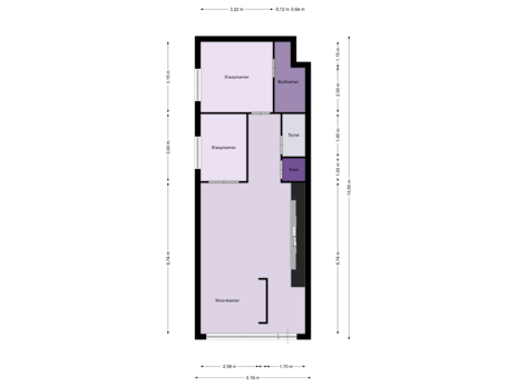 - 18 m² (3,50 meter diep en 5,00 meter breed)