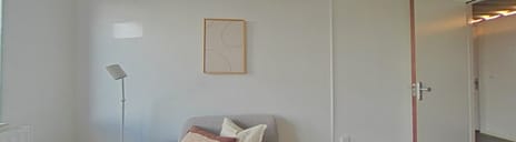 Via uw eigen voordeur betreedt u de woning. Direct bij binnenkomst valt de hoeveelheid licht van deze woning op. We beginnen bij de entree waar zich het separate toilet bevindt. Deze is zwevend uitgevoerd middels een wandcloset, volledig betegeld en voorzien van een fonteintje. Het plafond is hier verlaagd en voorzien van inbouwverlichting. Vanuit hier loopt u door naar het woongedeelte. Deze is van goed formaat en heerlijk licht door aanwezigheid van de diverse raampartijen. Het voelt hier lekker ruimtelijk aan. De strakke wandafwerking in combinatie met de mooie pvc-vloer maken het geheel af. Aan de andere zijde van het woongedeelte is de moderne keuken gesitueerd. Die mag hier natuurlijk niet ontbreken. De keuken is van alle gemakken voorzien zoals een koelkast met vriesvak, 4-pits elektrische kookplaat met afzuigsysteem, spoelbak met mengkraan, een combi-oven/magnetron, de plek voor uw wasmachine en diverse boven- en onderkastjes voor de nodige opbergruimte. Vanuit de keuken loopt u door naar het slaapgedeelte. Hier kunt u gemakkelijk uw bed plaatsen. Er is eveneens voldoende ruimte voor het plaatsen van een nachtkastje. De studio is zo in te richten dat u een mooie scheiding van wonen en slapen kunt creëren. Tot slot de badkamer. Deze is van prima formaat, volledig betegeld en voorzien van een ruime inloopdouche met thermostatische mengkraan, een vaste wastafel met mengkraan en spiegel, alsmede een designradiator voor uw handdoeken. Uiteraard mag het verlaagd plafond met inbouwspots hier niet ontbreken.