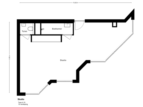 Via uw eigen voordeur betreedt u de woning. Direct bij binnenkomst valt de hoeveelheid licht van deze woning op. We beginnen bij de entree waar zich de badkamer bevindt. Deze is van prima formaat, volledig betegeld en voorzien van een ruime inloopdouche met thermostatische mengkraan, een vaste wastafel met mengkraan en spiegel alsmede een designradiator voor uw handdoeken. Uiteraard mag het verlaagd plafond met inbouwspots hier niet ontbreken. Vanuit hier loopt u door naar het woongedeelte. Wat een licht en ruimte! Deze is van goed formaat en heerlijk licht door de aanwezigheid van diverse raampartijen. Het voelt hier lekker ruimtelijk aan. De strakke wandafwerking in combinatie met de mooie pvc-vloer maken het geheel af. Aan de andere zijde van het woongedeelte is de moderne keuken gesitueerd. Die mag hier natuurlijk niet ontbreken. De keuken is van alle gemakken voorzien zoals een koelkast met vriesvak, 4-pits elektrische kookplaat met afzuigsysteem, spoelbak met mengkraan, een combi-oven/magnetron, de plek voor uw wasmachine en diverse boven- en onderkastjes voor de nodige opbergruimte. Vanuit de keuken loopt u door naar het slaapgedeelte. Hier kunt u gemakkelijk uw bed plaatsen. Er is eveneens voldoende ruimte voor het plaatsen van een nachtkastje. De studio is zo in te richten dat u een mooie scheiding van wonen en slapen kunt creëren. Heeft u de wens tot het creëeren van een tweede slaapkamer? Dan behoort dit uiteraard tot de mogelijkheden. Wij vertellen u graag meer tijdens de bezichtiging. Tot slot het separate toilet. Deze is zwevend uitgevoerd middels een wandcloset, volledig betegeld en voorzien van een fonteintje. Het plafond is hier verlaagd en voorzien van inbouwverlichting.