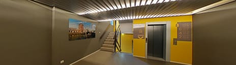 Via de afgesloten gemeenschappelijke entree met bellentableau en brievenbussen heeft u toegang tot de lift en het trappenhuis.