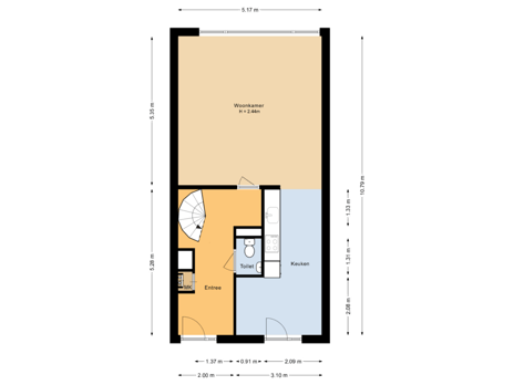 Entree/hal met meterkast, toilet, ruime woonkamer met veel lichtinval, luxe half open luxe keuken voorzien van diverse inbouwapparatuur en aangrenzende eetkamer.